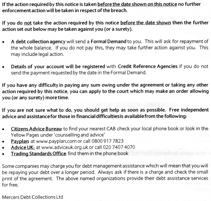 Why are Default Notices, issued by Mercers on behalf of BarclarCard deemed invalid ??