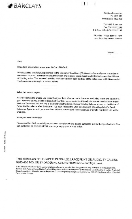 • Notice of a new Barclays default on an account that has already been default over 6 years ago!!!