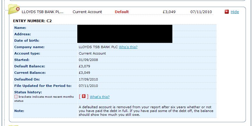 The only thing iI can think of... C2 that current balance is when i had an agreement with lloyds (paid them 30.00) and then they sold it off to apex... ater 1 month of payments.