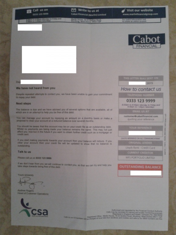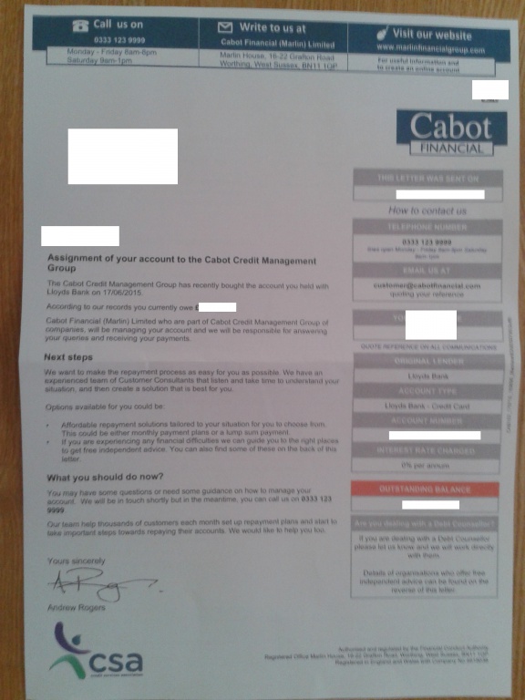 I seem to remember having letters from Robinsons Way a long time ago and it was connected to a Halifax CC, they didn't give me too much stress so I wouldn't be too concerned at the moment.