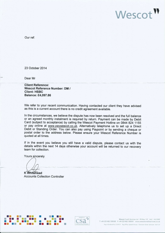 Re: HSBC & DG Solicitors