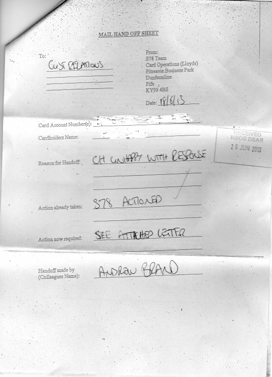 I also rceived a copy of what I sent to then (lloyds) did not comply with cca.