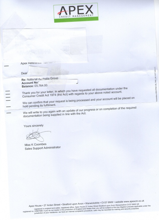 lloydscredit card x 2 partner was paying a agreed payment £30month & myself-gone to apex