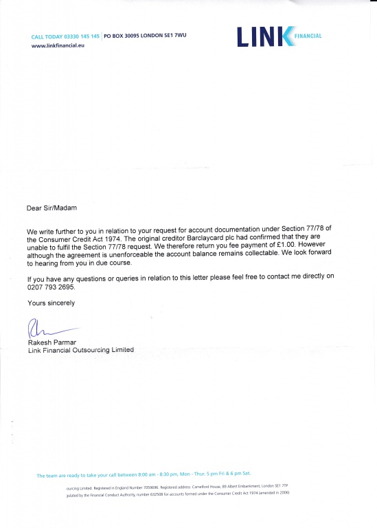 Re: Barclaycard / Link Financial