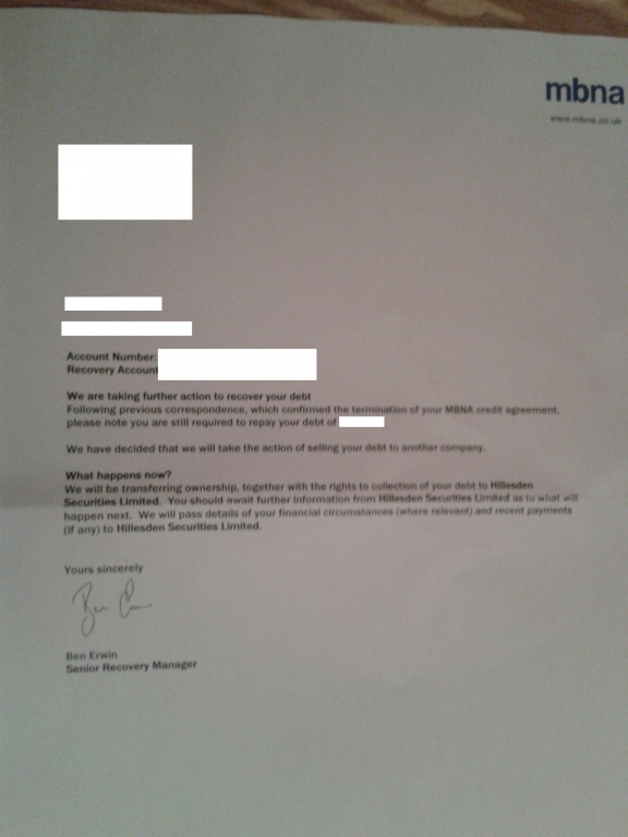 what shall i do regarding the first letter ,i have already recieved a letter from the dca telling me that mbna no longer own the account ,so i sent them a letter[account sold while in dispute] saying that i was waiting for a reply from mbna on the cca ,and so far they have not tried to contact me .