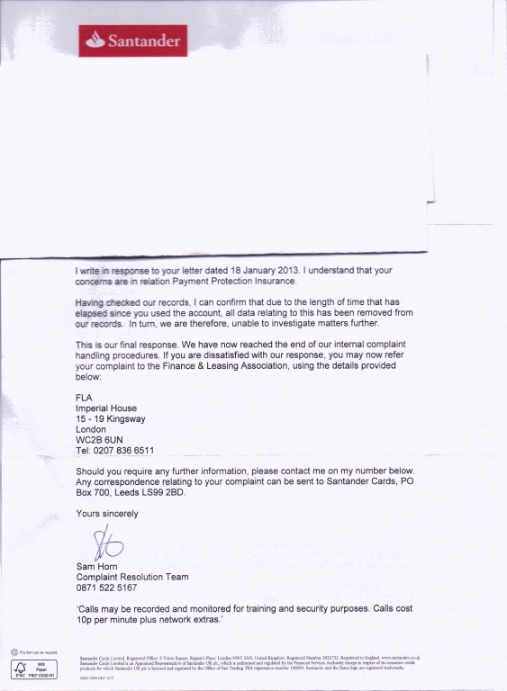 I wrote back stating why i feel i was mis sold the insurance and they have responded saying: that due to the length of time since i last used the account, all data has been removed and they are unable to investigate.
