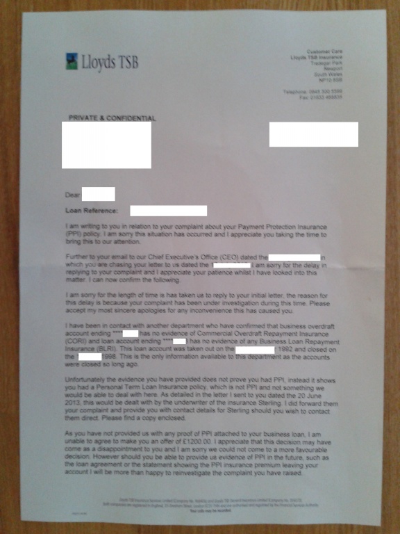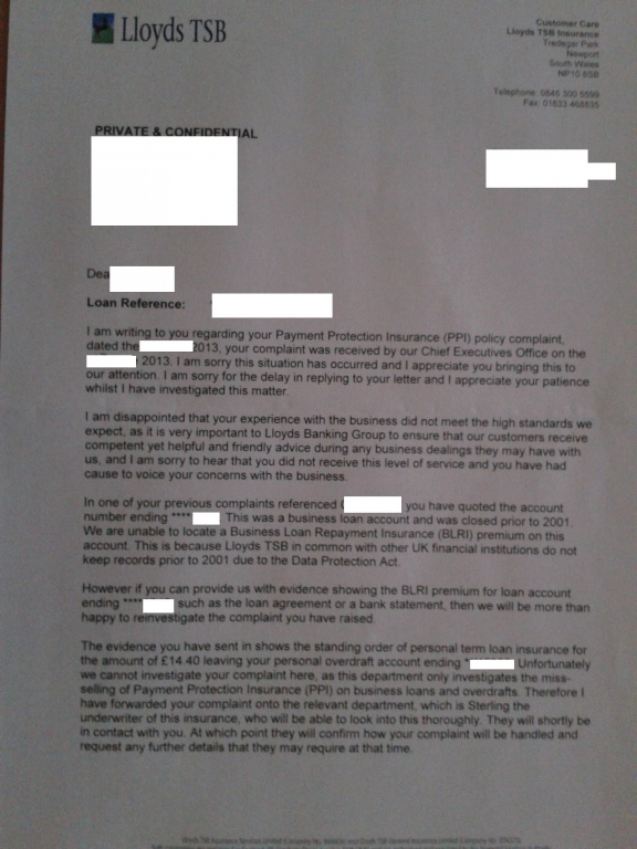 Re: ppi from lloyds
