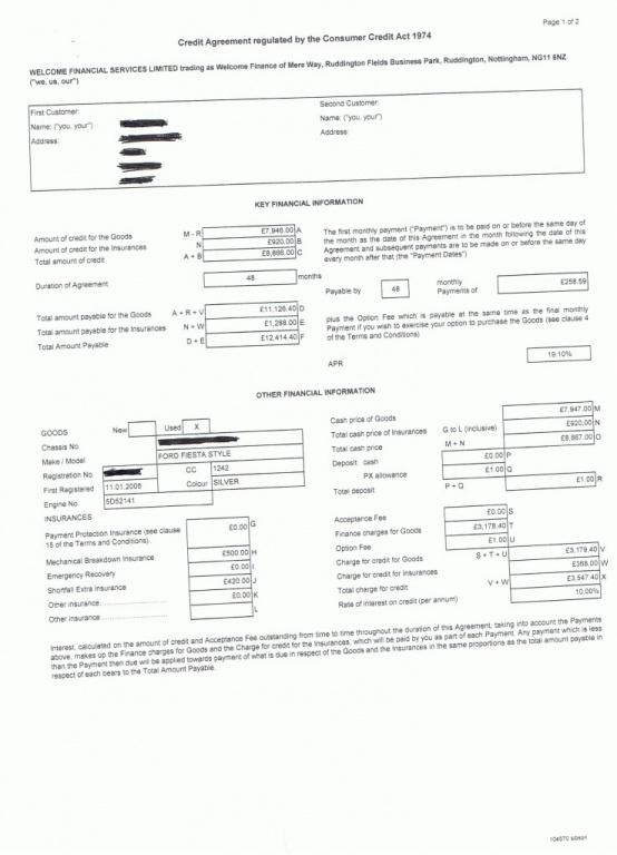 I want to check that all the prescribed terms are correctly displayed and laid out in the agreement. I have read through your guide on this forum and at first glance, they do appear to be there, however they are combined. But it does not tell me what the repayments are for each the HP and Insurances, but they did ask me to sign both the boxes. You may also notice that it hasn't been signed by the lender.