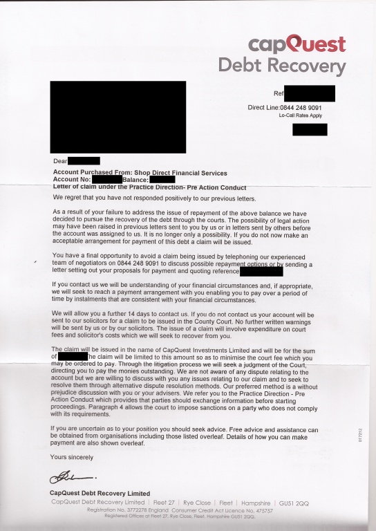 Received another copy of CCA from Muck Hall exactly the same as the one they sent only a couple of days ago.