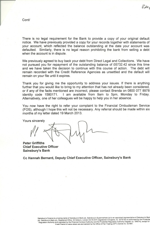 ~ Reply from Sainsbury's re refund of charges received. State they have option to buy back part of debt from DLC so will refund charges etc via that method rather than refund directly to me. The FOS are still to rule on the matter though, however long that takes