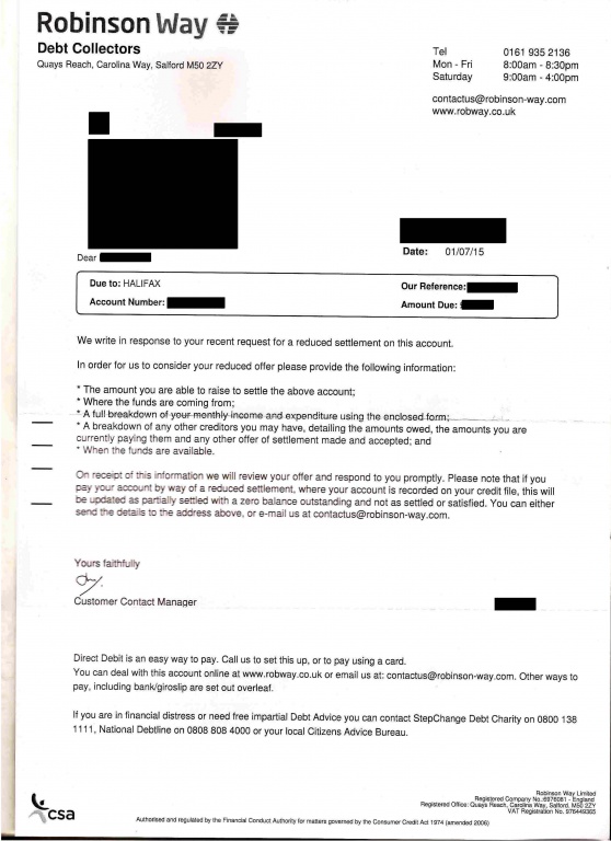 Current Arrangement: - No payment made since April 2015 (Self-managed DMP before that from May 2013)