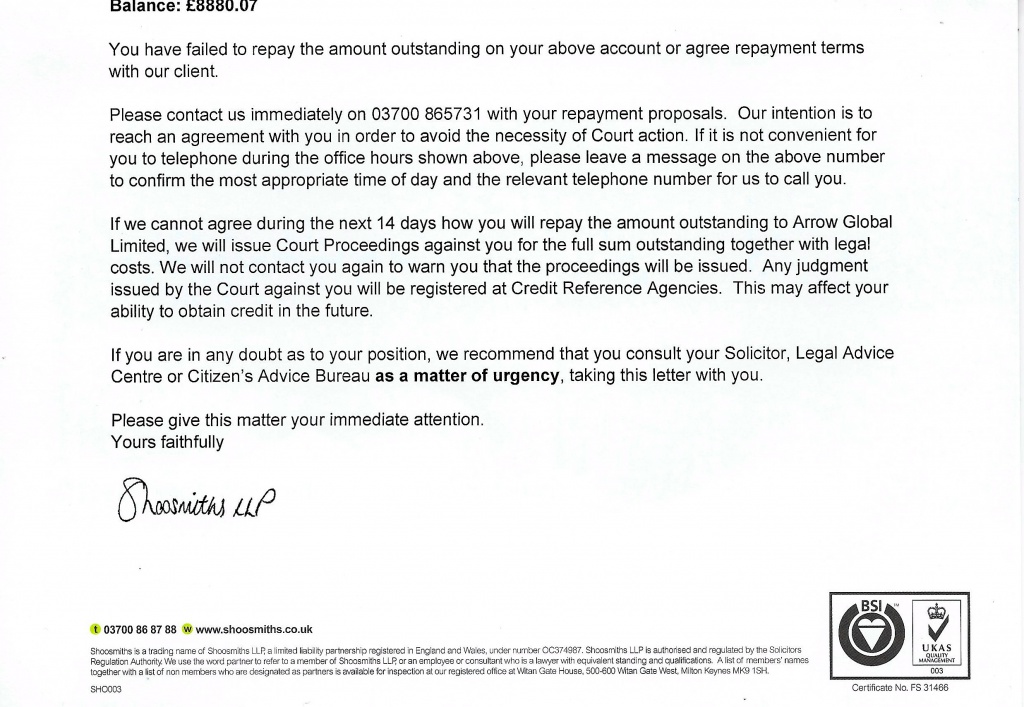 ok letter from Shoosmiths today