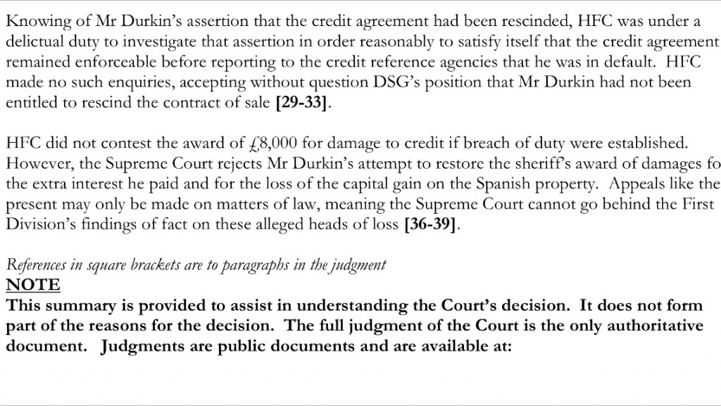 Well in around 20-30 mins the eagerly awaited Durkin (vs HFC/PC World) Supreme Court Judgment should be handed down (09.45am)..