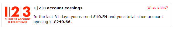 With the 123 you don't get interest charged, just the flat £1 per day and the £2 monthly fee. So based on my free money as above, minus £48 for the fee - I am quids in.