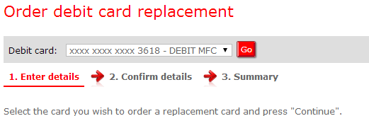 You can also see what cards they issue for you - if you click Account Services from the top tab, then head to 'Account Requests' (scroll down) - then click "Order a replacement debit card" you'll see if the card they have issued is online or offline as follows - if it reads DEBIT MFC Online then it's not the embossed card (like the old electron)