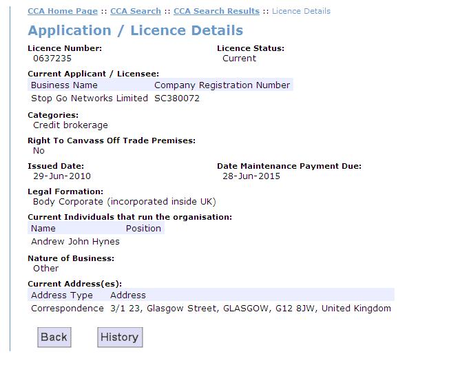 However notice at the base of the sites, each has a CCL number as being #637235 yet to have a CCL you must name each firm you intend to trade under, so I checked the CCL Register and found this: